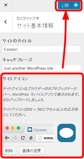 サイトアイコンを設定する方法 ファビコン、アップルタッチアイコン等の設定Cocoon。
