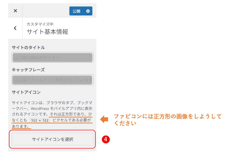 WordPress サイトアイコン ファビコン の設定方法初めてのWordPressの使い方。