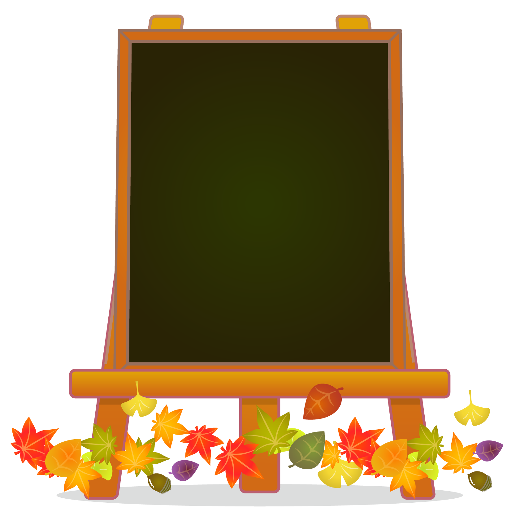 商用フリーイラスト_芸術の秋_イーゼル_落ち葉_キャンバス_フレーム縦_autumn_黒板 - 商用OK!フリー素材集「ナイスなイラスト」。
