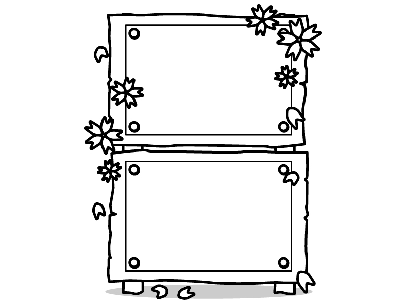 桜と縦に2つ並んだ立て看板のフレーム飾り枠イラスト無料イラスト かわいいフリー素材集 フレームぽけっと。