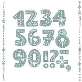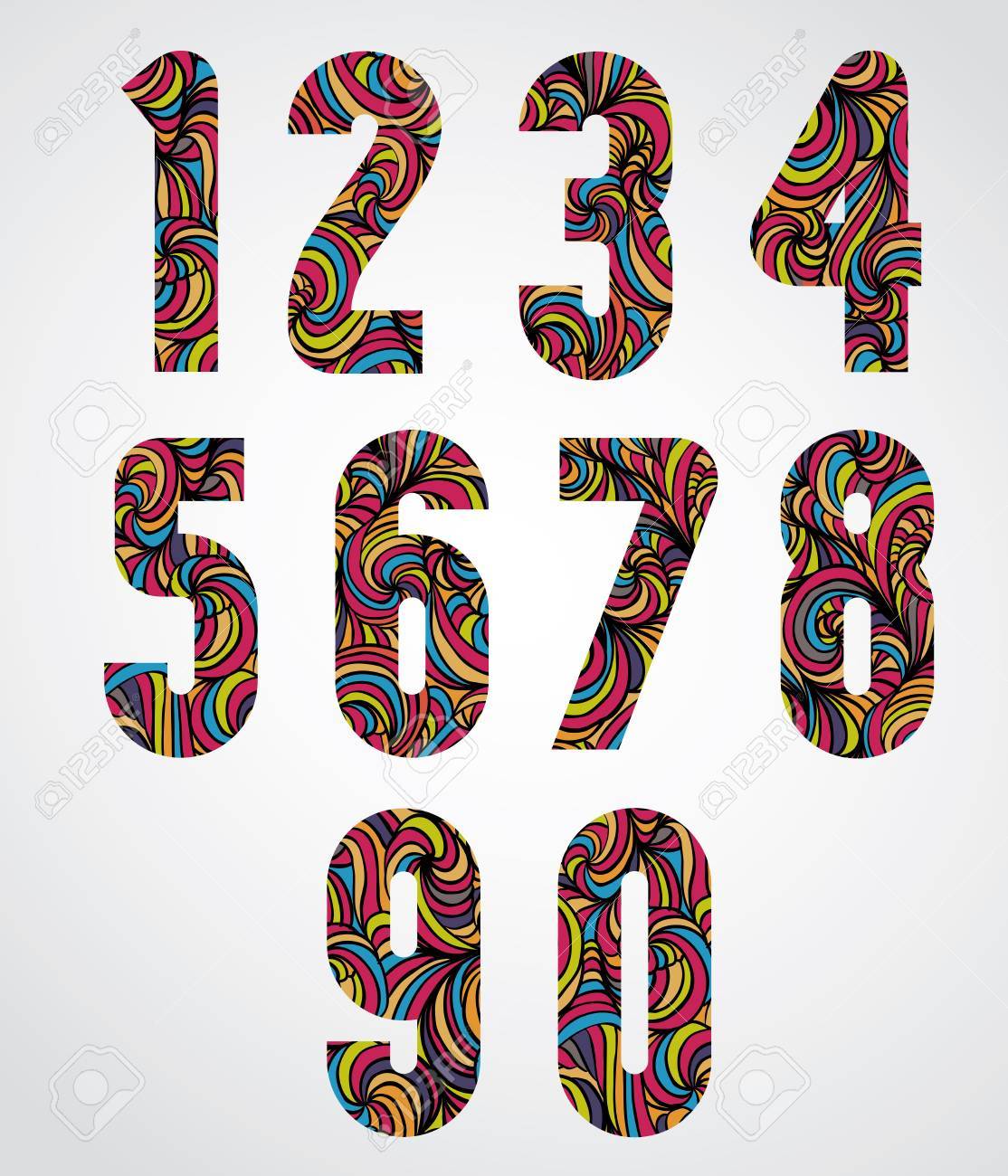 太字の数字のコレクションのセット。カラフルな装飾。手描きの数字のイラスト素材・ベクター Image 118645817。