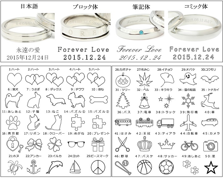 楽天市場 リング文字入れチケット・指輪,リング刻印文字入れ,イニシャル,名前,日付,マーク,記号オータムセール : luire。