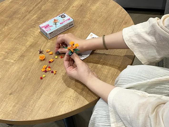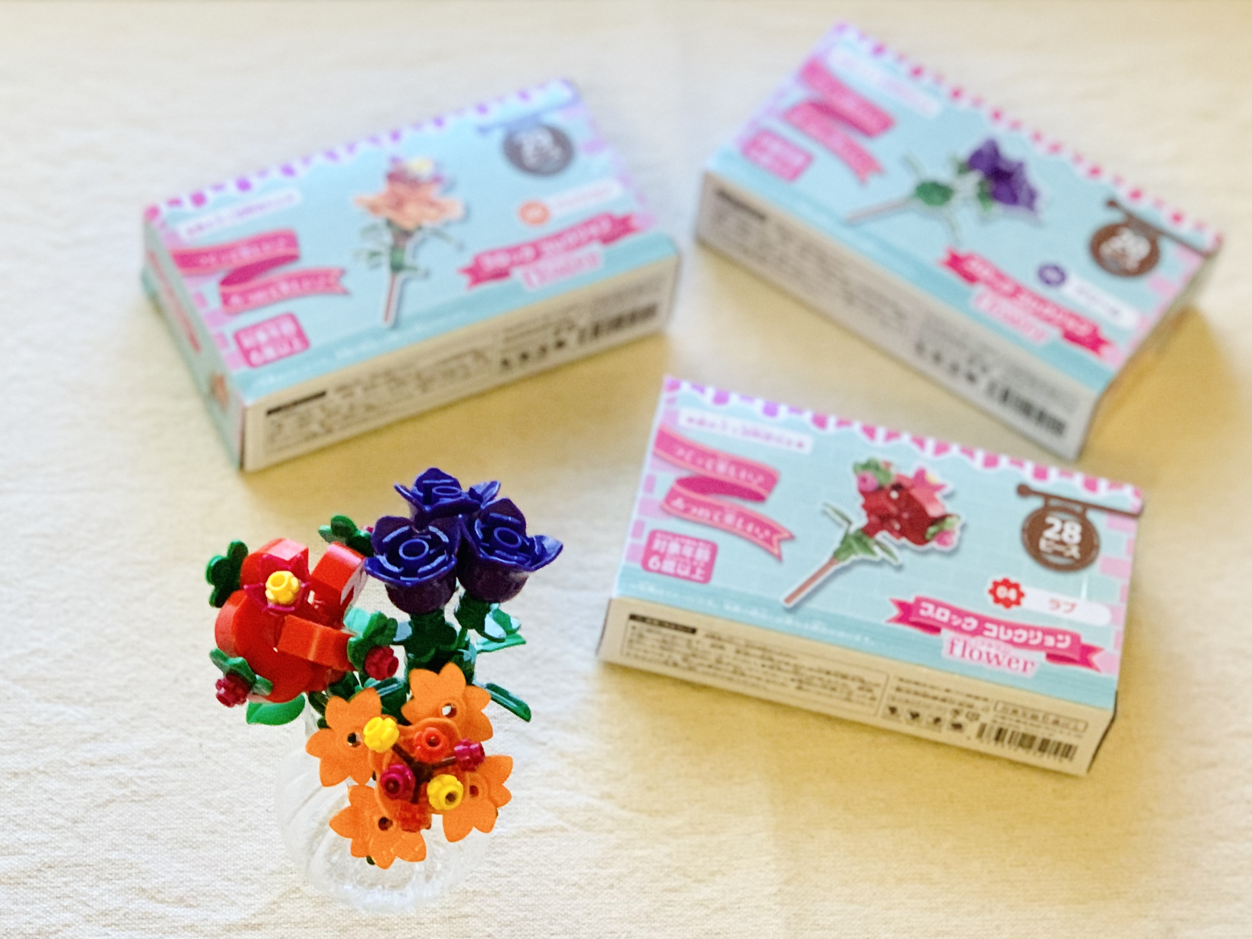 セリアで見つけた「ブロック コレクション flower」はミニサイズのお花が作れる!推しとあわせたら超かわいい世界が広がりました♡Pouch ポーチ。