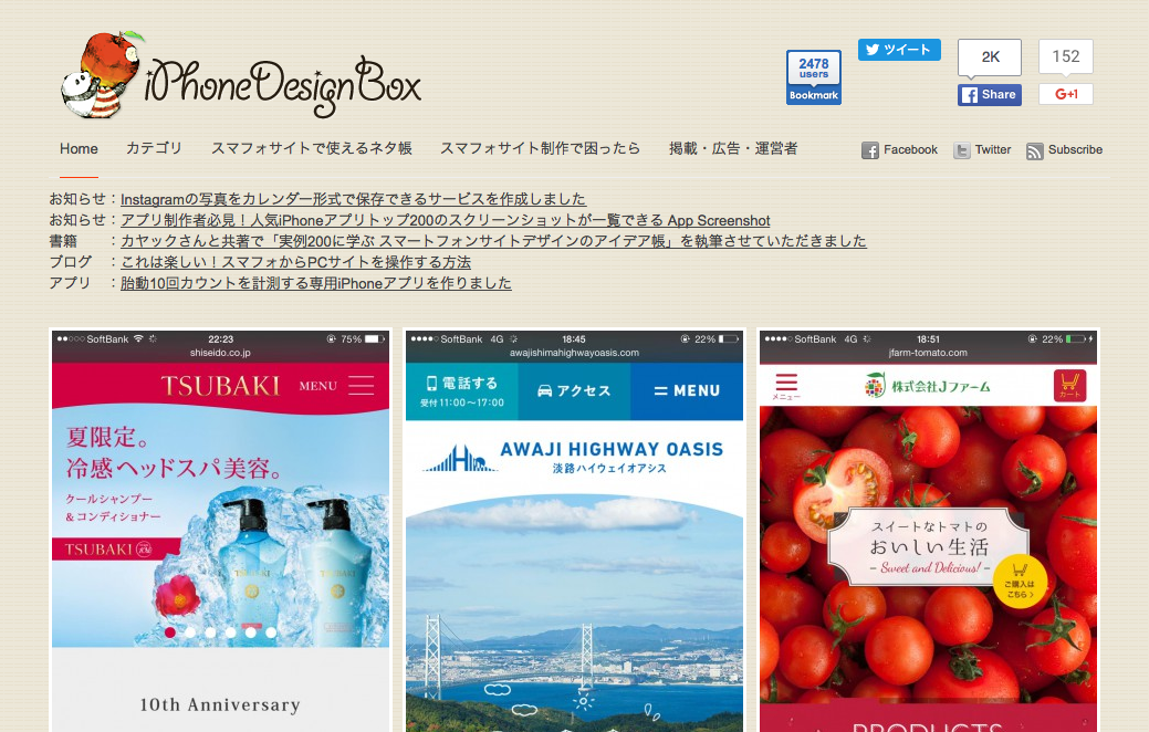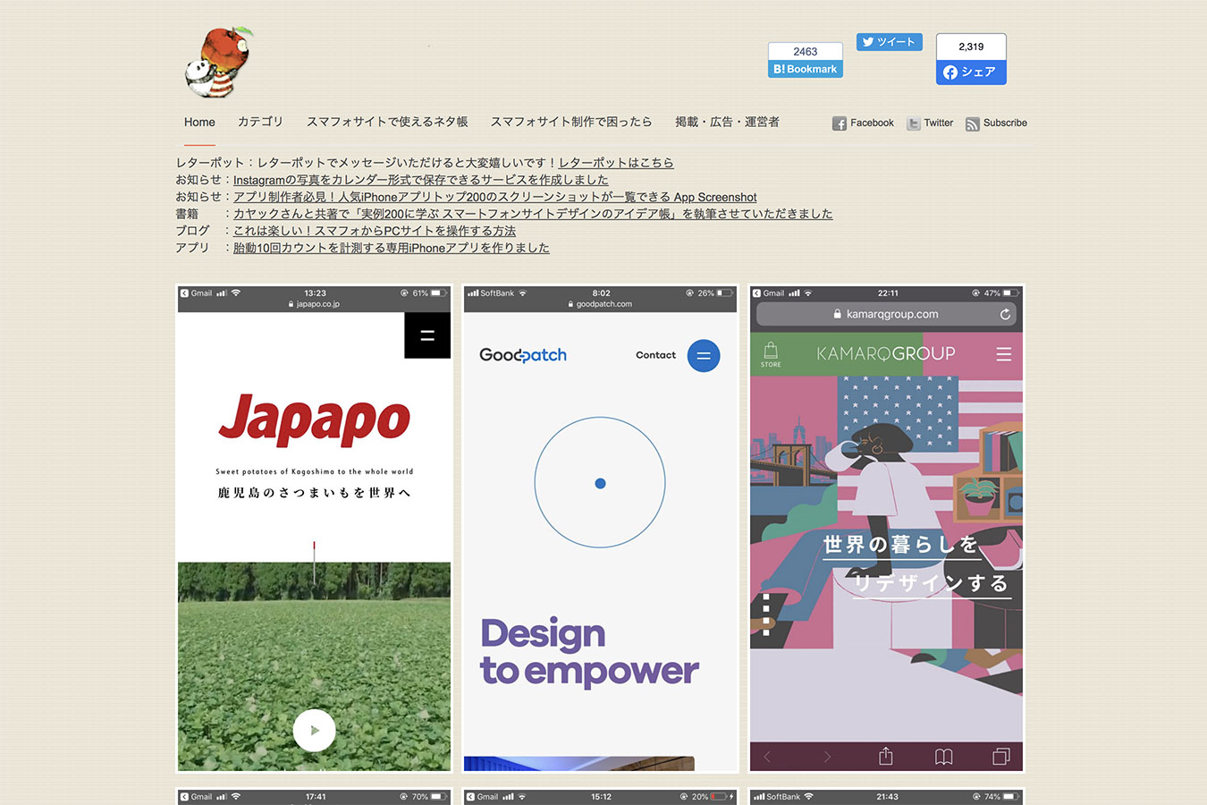 スマホサイトのデザインで迷った時に参考になるスマホデザインのまとめサイト。