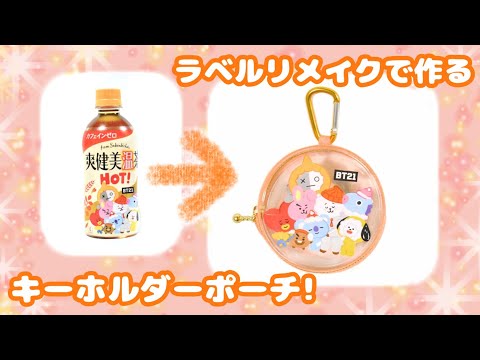 100均の材料と、ペットボトルのラベルでポーチを作る方法! タイニータンジョージア、BT21爽健美茶のラベルリメイク♪。