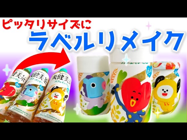 BT21×爽健美茶 ラベルリメイク方法その1 ボトル・丸筒缶に簡単リメイク!アミヨロブログ BTS ARMYのよろず屋。