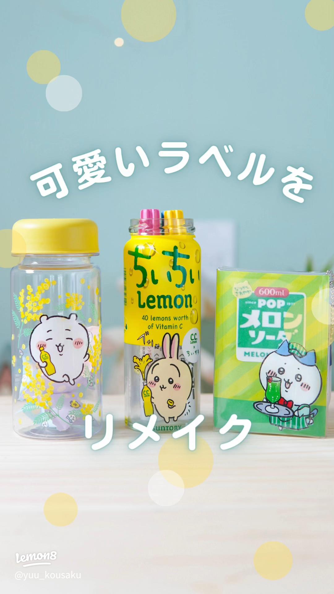 ちいかわペットボトルのラベルで色々リメイクするよ❤️ちいかわCCレモン。
