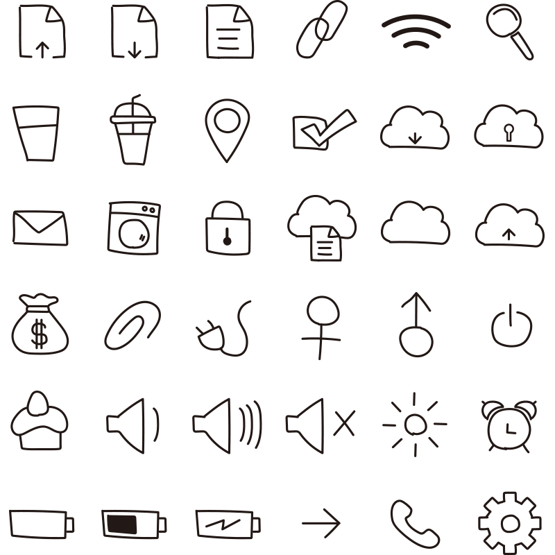 アイコンセット1の無料 フリー イラストかわいい手描きの無料素材「てがきっず」保育園・小学校・介護施設にぴったりのフリー素材イラスト。