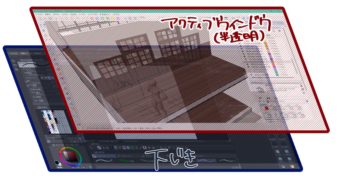 背景作業に最適!ウインドウを透過するアプリを3種類ご紹介しますウェブトゥーン背景×スケッチアップ丹羽四つ葉 Niwa Yotsuba。