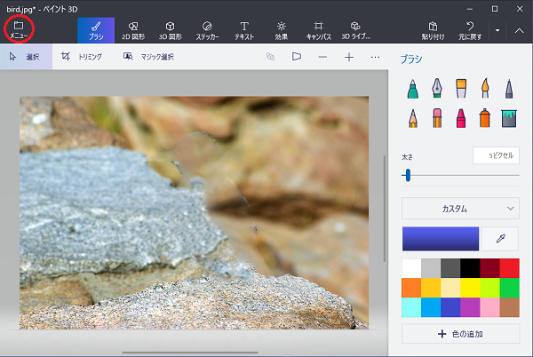 ペイント3Dで画像の背景を透明化し保存する方法 透過PNG。