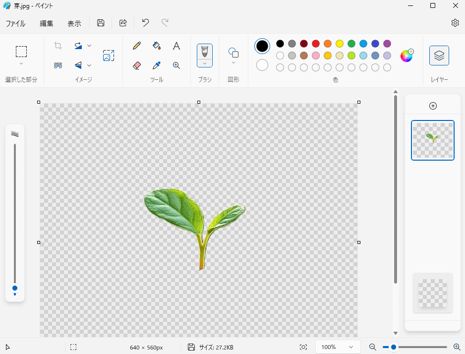 Windows11 ペイントで写真の背景を透明にする 透過。