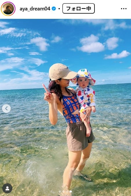 Dream Aya、娘顔出しの海水浴ショット公開「水着がオシャレ」「2人とも可愛い」の声 - モデルプレス。
