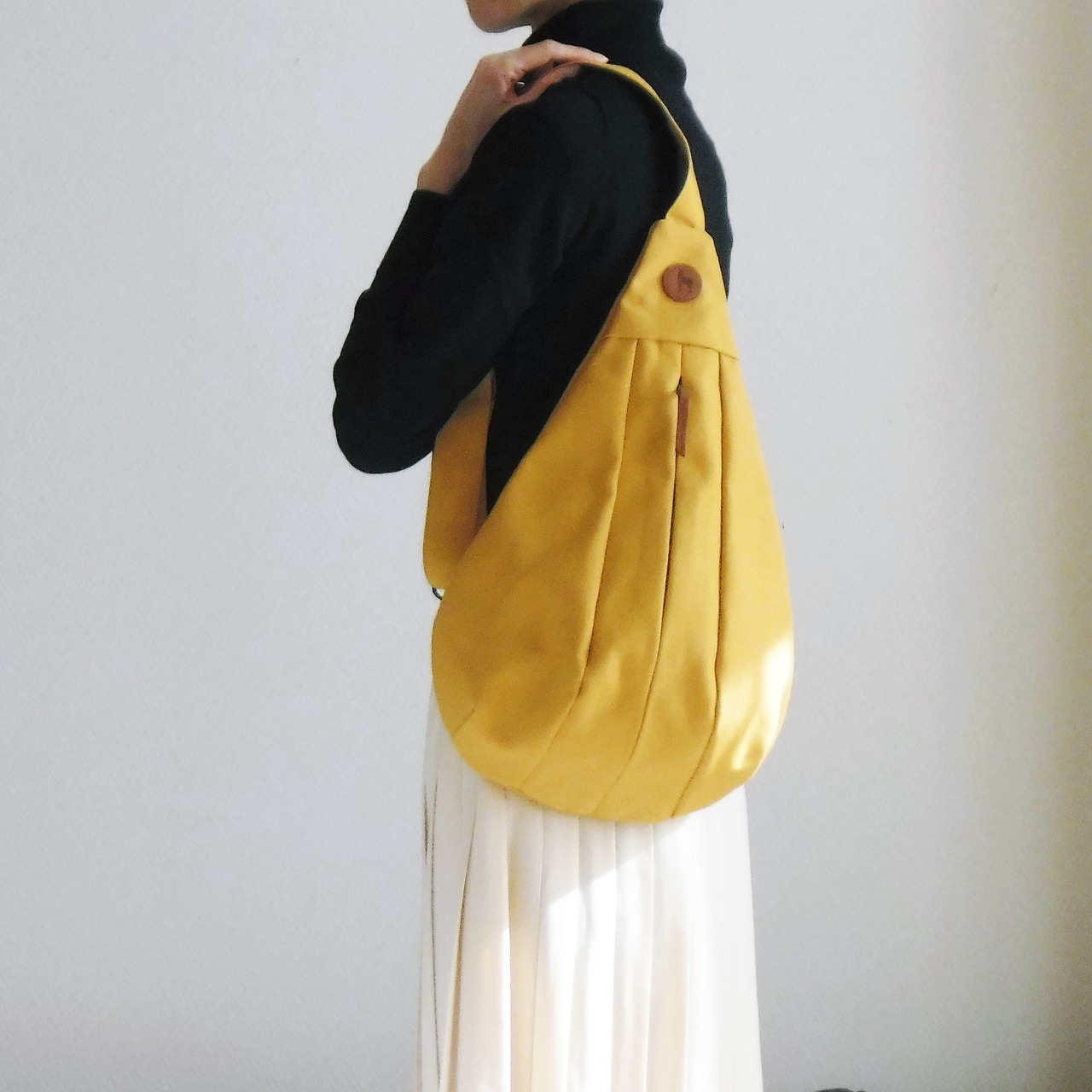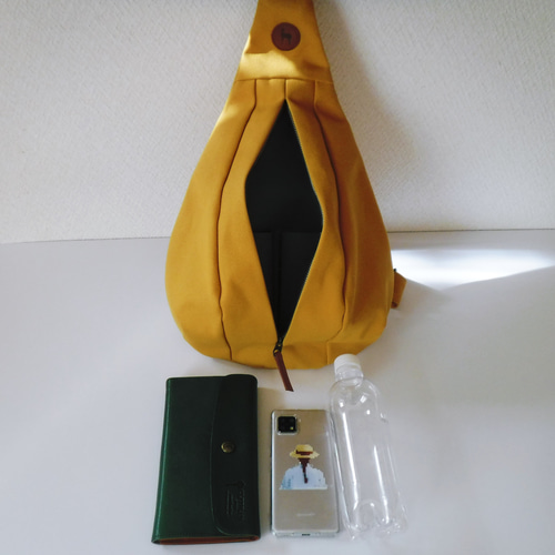 ボディバッグ「Drops」8号帆布マスタード しずく型 ドロップ型 ボディバッグショルダーMILK MODE。