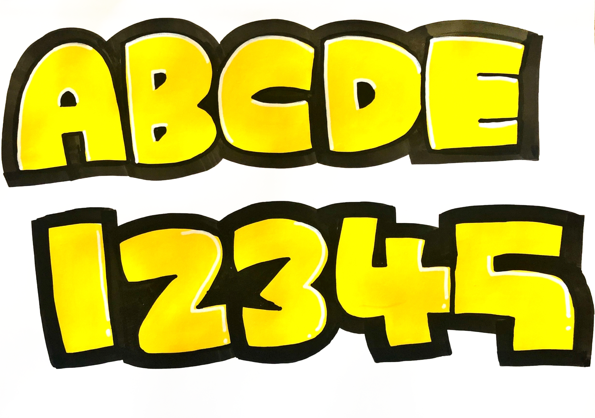 白地背景に黒縁のポップな字体のカラフルなパステルカラーなアルファベット Stock VectorAdobe Stock。