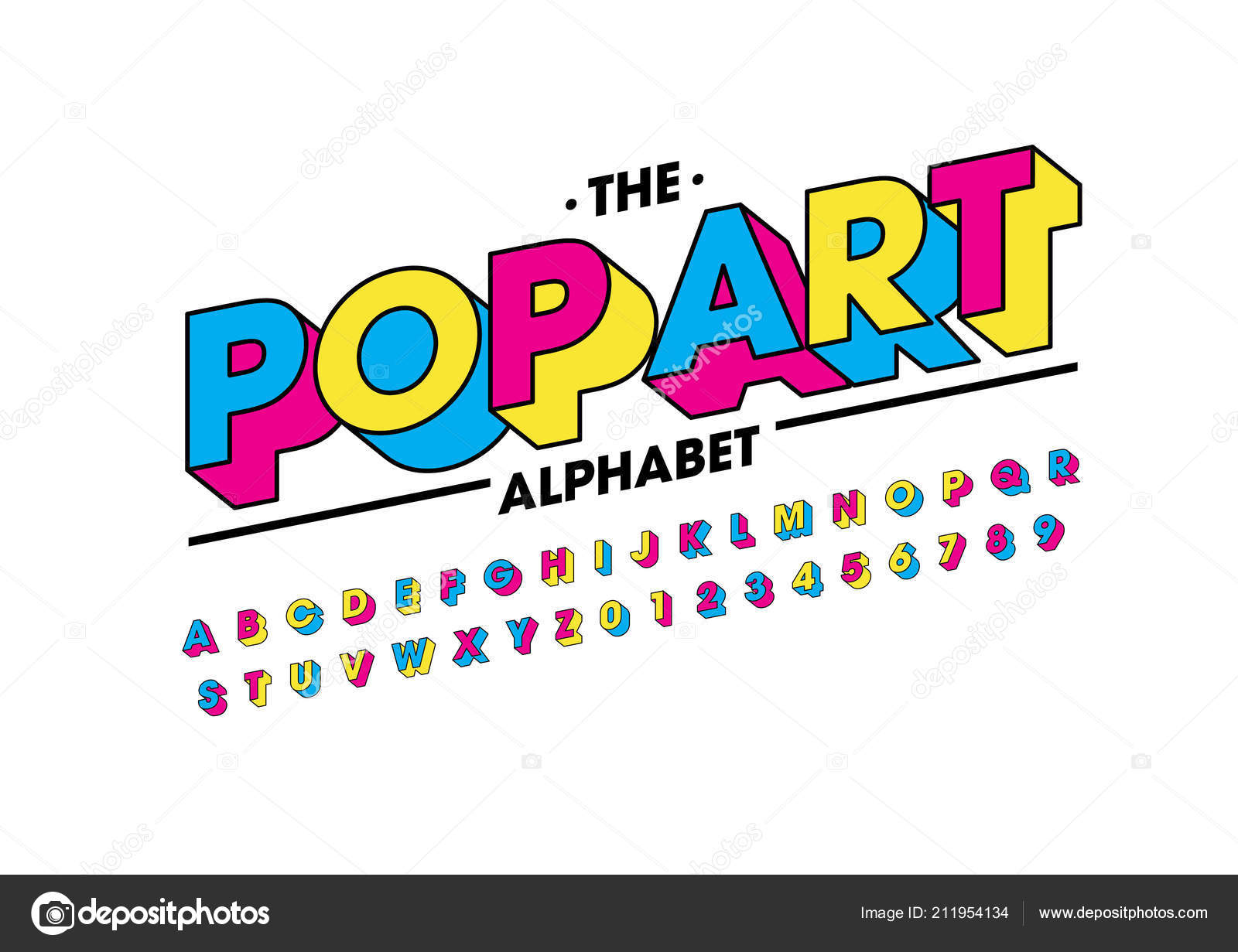 ポップアートのフォントやアルファベットのテンプレートです 様式化されたモダンなフォントのカラフルなベクトル イラスト ストックベクター©Passionartist 211954134。
