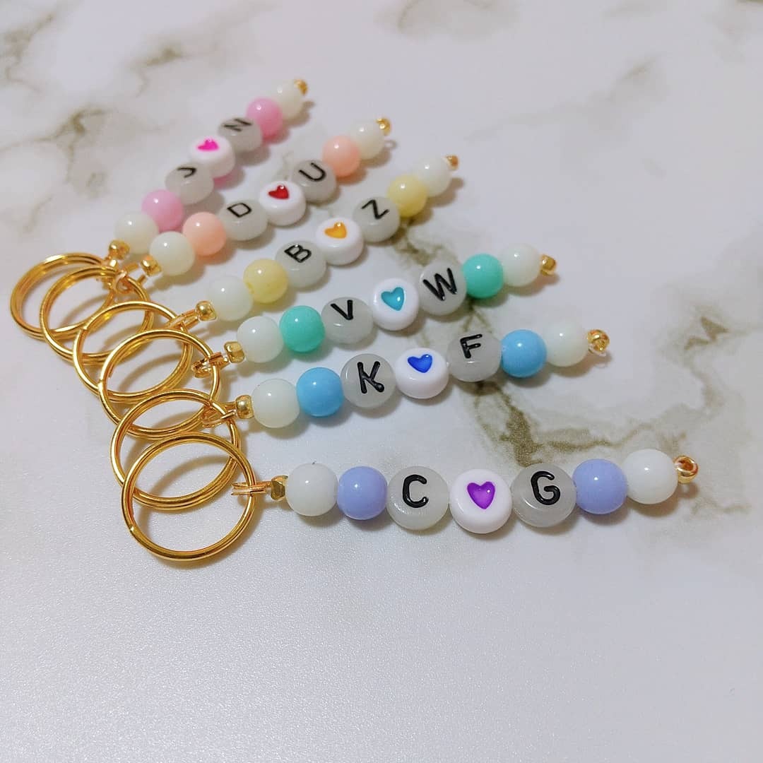 ビーズキーホルダー ストラップ アルファベット ハンドメイド 100均ダイソー・セリアにも「アルファベットビーズ」で推しの。