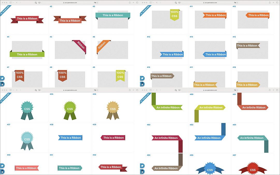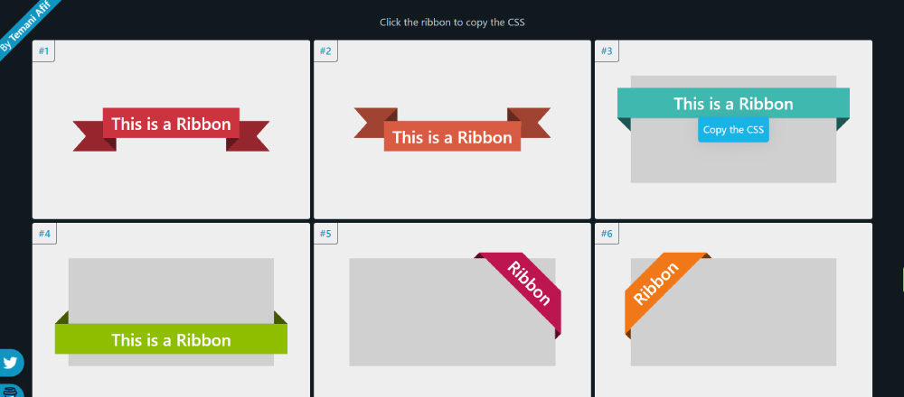 HTMLはdiv要素一つだけ、あとはCSSをコピペするだけで100種類以上のリボンを簡単に実装できる -CSS Ribbon Shapesコリス。