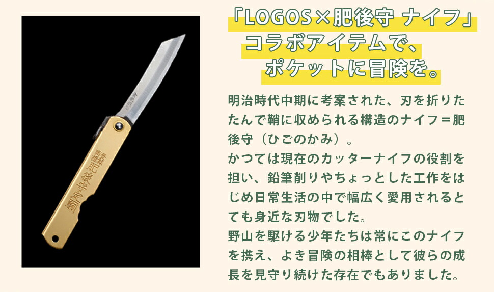 LOGOS ロゴス LOGOS×肥後守 ナイフ VG10 ひごのかみ ポケットナイフ アウトドア調理や、ブッシュクラフトなどにアウトドア・おもちゃ・ホビー,アウトドア用品,ナイフ・包丁7dials セブンダイヤルズ 本店。
