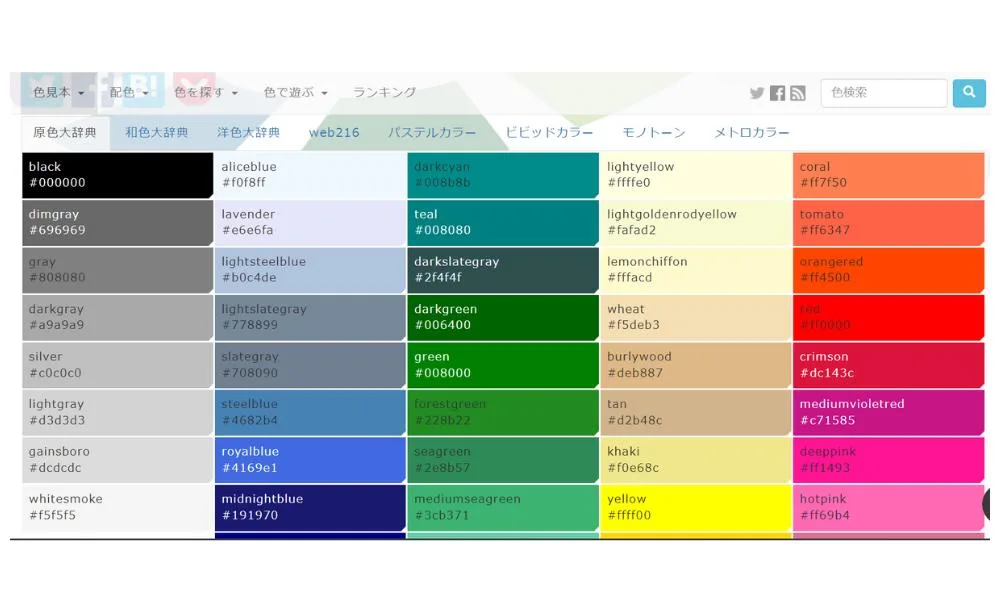 色指定に16進数のカラーコードを見て探す原色大辞典!Webデザインに便利!webまる。