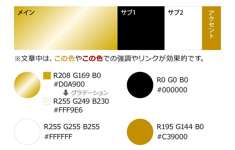 高級感のある色の組み合わせ 金色・ゴールド カラーコードのrgbカラーパレット グラデーションイメージWebブランディングでホームページをデザインWebブランディングラボ。