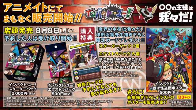 ◯◯の主役は我々だ! on X: "明日8 8 月 から、アニメイトでインパクト・ユー!やポスター、その他関連商品の販売開始!予約なしでも受け取れる購入特典カードは数量限定なので、お求めの方はお早めに! ※ポスターは、おひとり様2枚までの購入制限があるのでご注意。