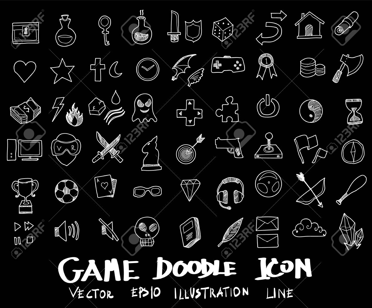 黒の落書きスケッチ ゲーム アイコン イラスト集のイラスト素材・ベクター Image 88050918。