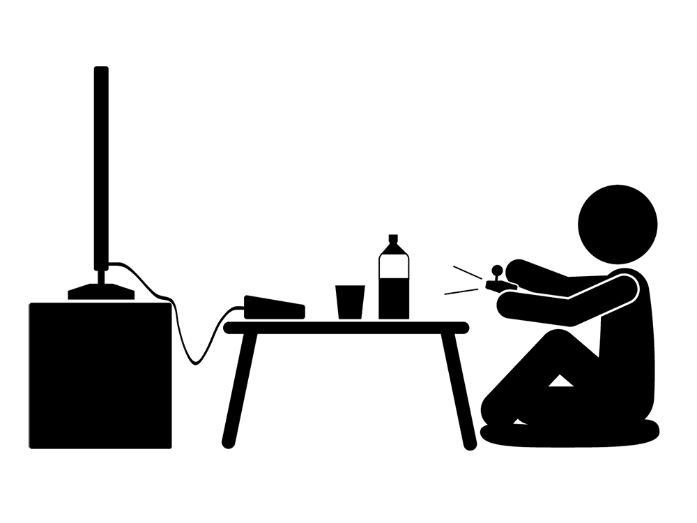 部屋でゲームをする - 無料ピクトグラム白黒イラスト。