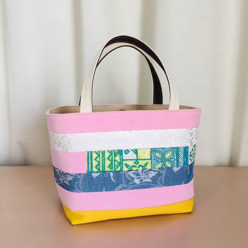 ハギレ色々パッチワークトートバッグ 桃 白 他 *ハンドメイド トートバッグ Mpp*ppM 通販 16625652Creema クリーマ。