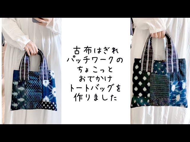 暮らしの手仕事 完成☺︎ 古布はぎれパッチワークのちょこっとトートバッグを作ってみた 着物リメイク はぎれ活用 作業動画 ソーイングvlog 刺し子kimono boro diy 時。