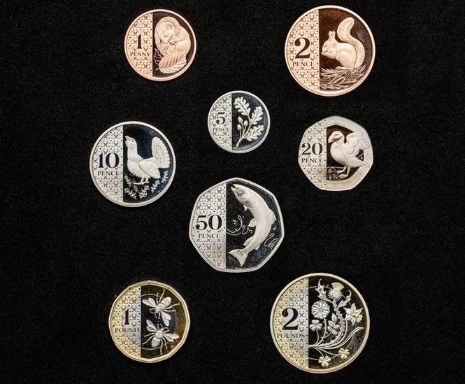 イギリスの新しいコインけものこけもの、いぎりすぐらし。