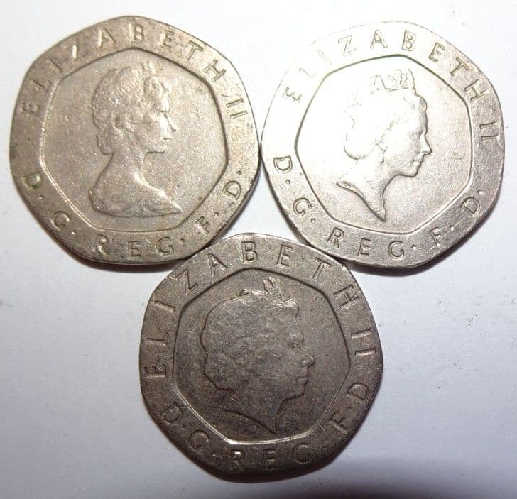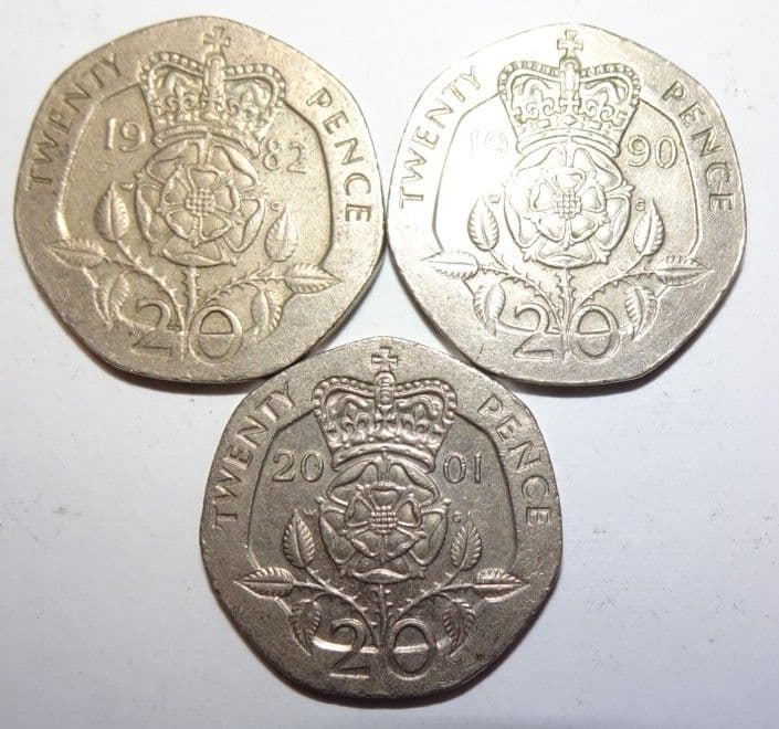 イギリス硬貨 20ペンス 3枚 約21mmデザイン3種 82、90、01- メルカリ。
