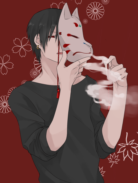 病み 男 狐面 イラスト かっこいい245 無料画像。