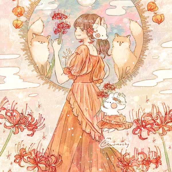 フリーアイコン*曼珠沙華とキツネと女の子momochyのおうちイラストレーターももちーのWebサイト。