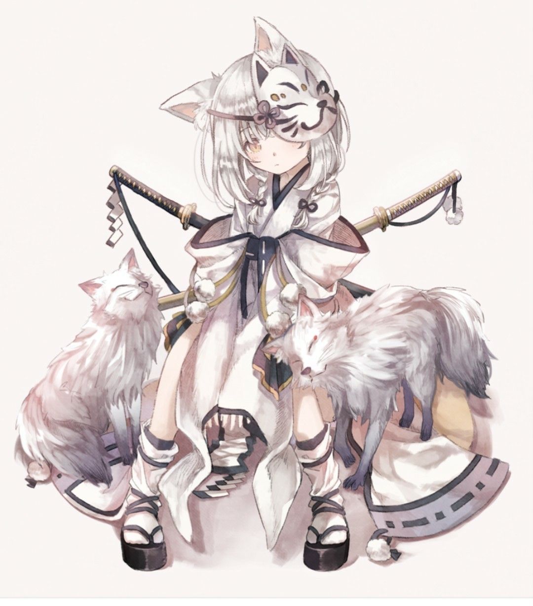 狐面 イラスト」のアイデア 8 件狐面 イラスト, イラスト, キャラクターデザイン。