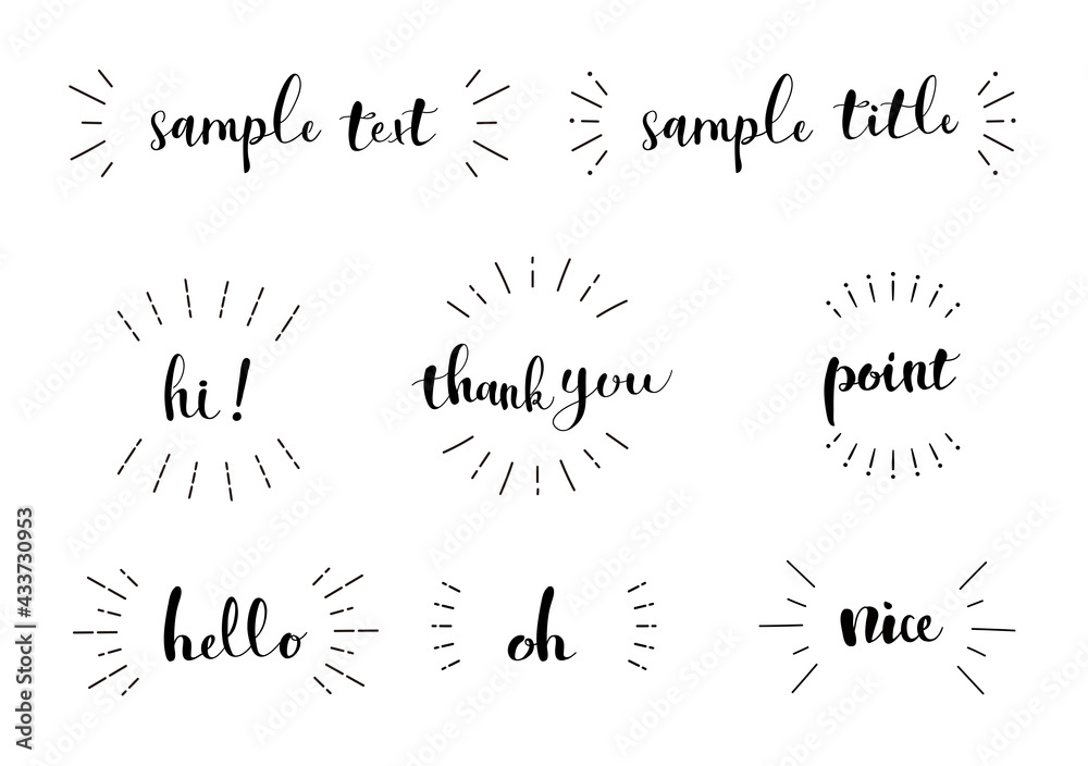 見出しフレーム サンバースト あしらい 集中線 太陽線 飾り 手書き アイコン セット Stock VectorAdobe Stock。