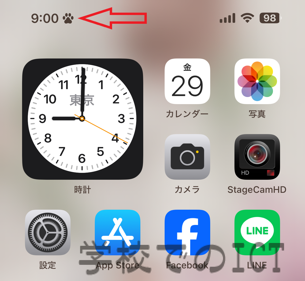 iPhone iPadの「集中モード」ステータスバーに肉球やロケットのマークが表示されているとき – 学校でのICT。