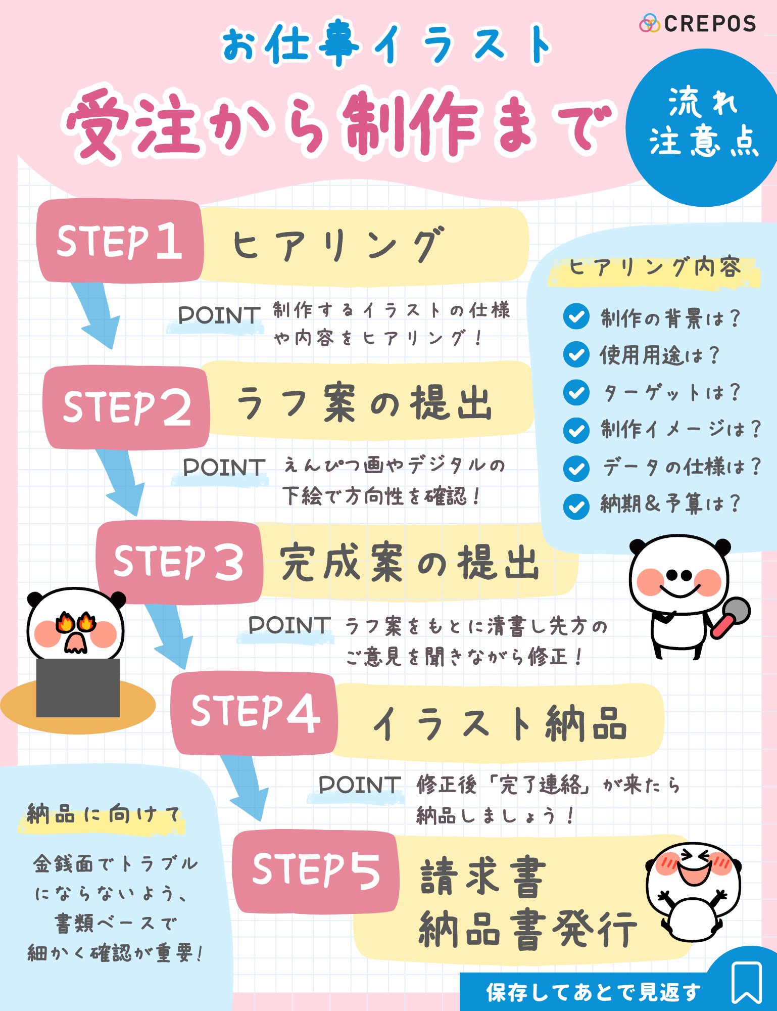 CREPOS Creator Bank クリポスキャラクター&イラスト制作 on X: "お仕事イラストって、どんな流れで作業を進めればいいの? 流れや注意点をまとめました✨ 詳しい解説はコラムをチェック👀 🔗https:t.co wfx5IhyO7bhttps:t.co lJMBGvx1Zn"X。
