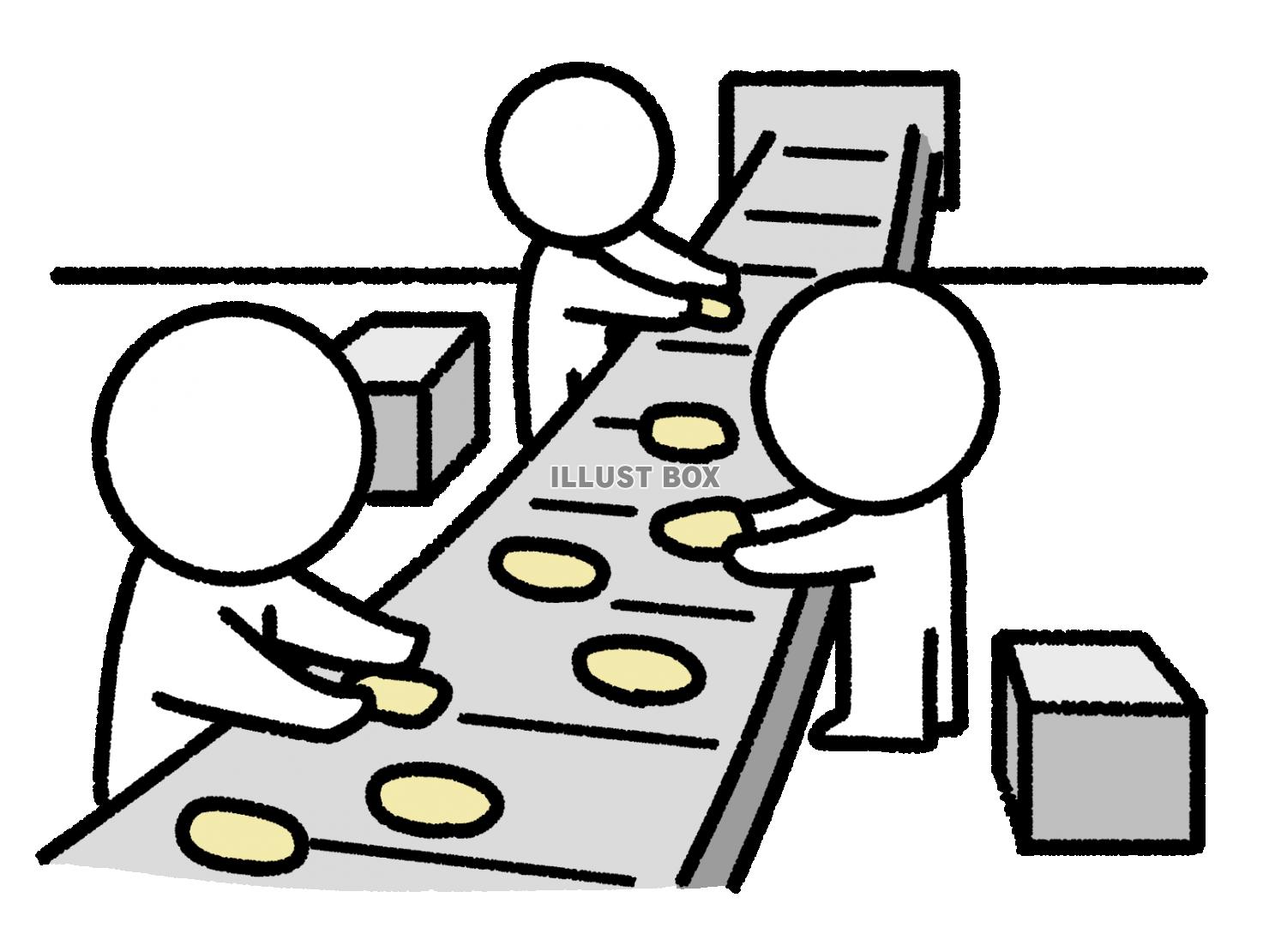コンベア 流れ作業 倉庫のライン作業:イラスト無料。