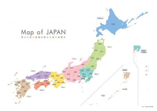 日本地図カラーインテリアのプリント素材を無料ダウンロード。