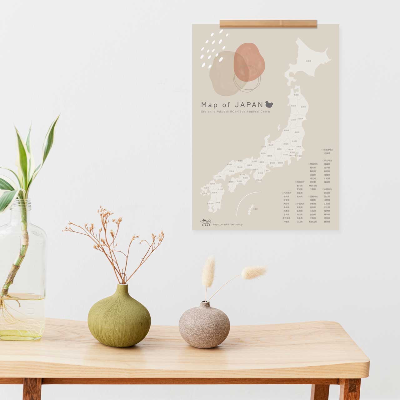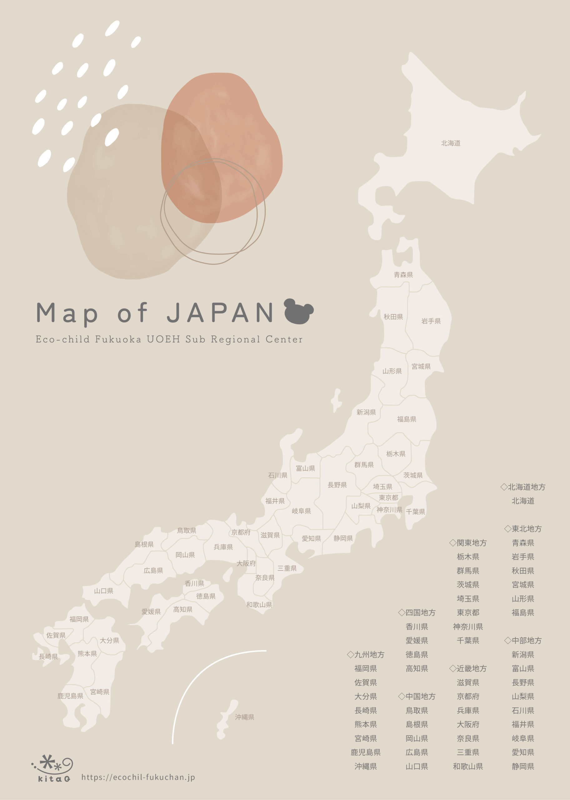 おしゃれな日本地図ポスター☆無料ダウンロード☆エコチル調査ふくおか 産業医科大学サブユニットセンター 北九州市。
