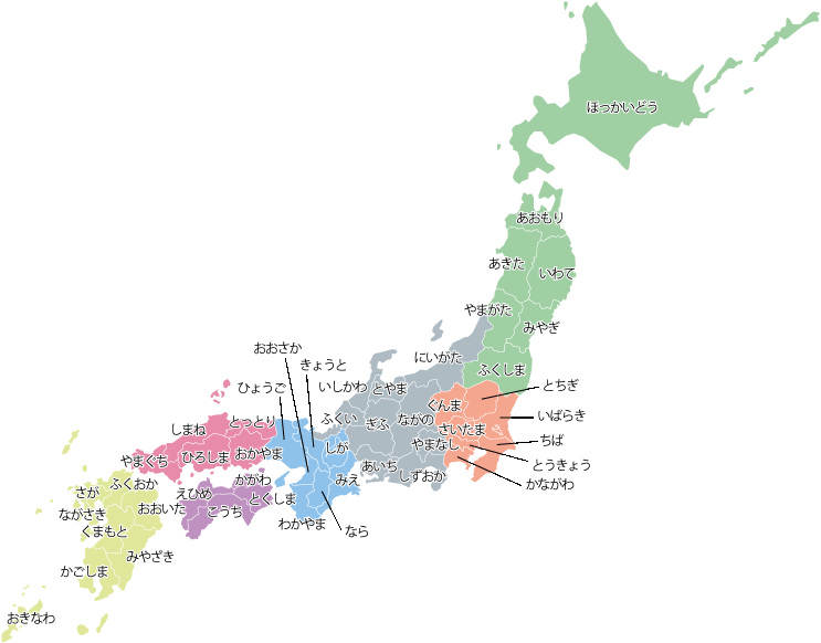 日本地図 都道府県 文字入り のイラスト – かわいいフリーイラスト素材 - イラストたうん。