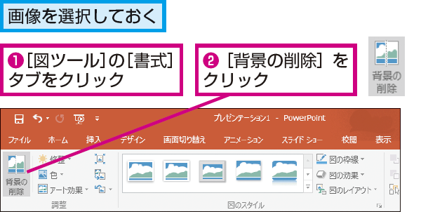 PowerPoint で画像の背景を削除するには - oshigotono.com。