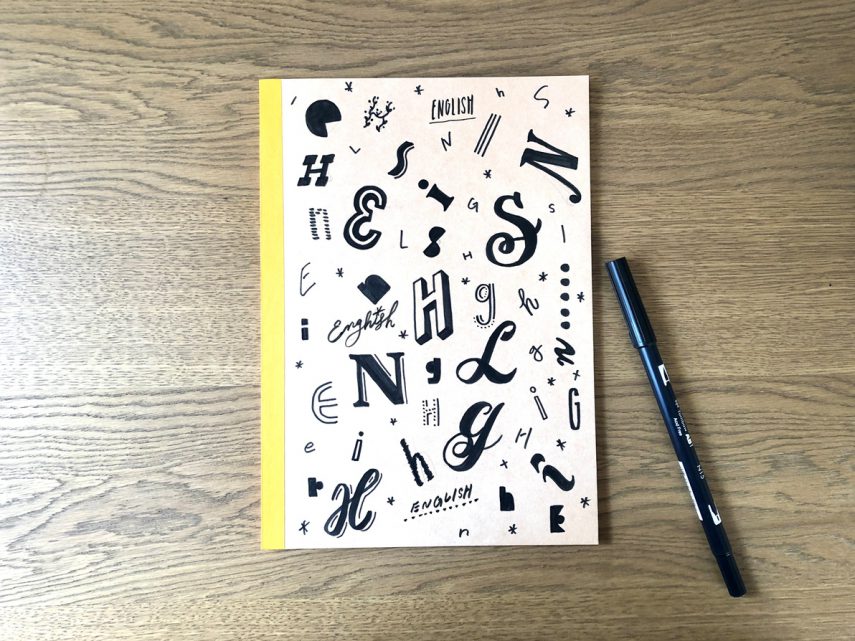 黒ペンで勉強ノートの表紙デコアイデア!TOMBOW FUN ART STUDIO トンボ鉛筆。