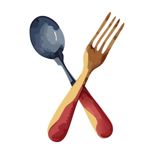 水彩で描かれたスプーンとフォークのイラスト 無料素材イラストダウンロード。
