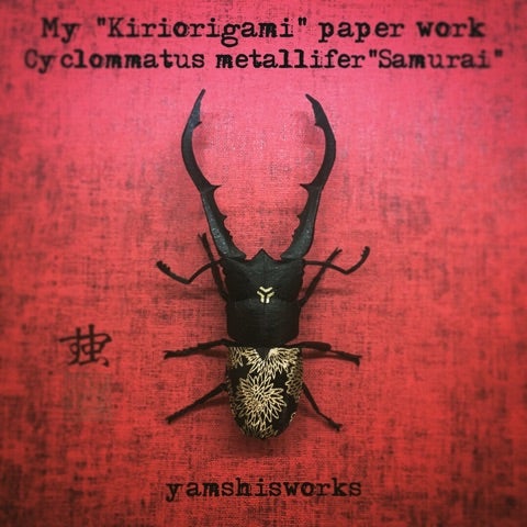 1枚の紙から切らないでミヤマクワガタ折りました! I folded Lucanus maculifemoratus from square paperwithout cutting! 使用サイズ paper size 200mm 使用した紙 カラペに金色の紙裏打ち PaperWrappingpaper + Golden paper 創作 神谷哲史 designed by Satoshi。