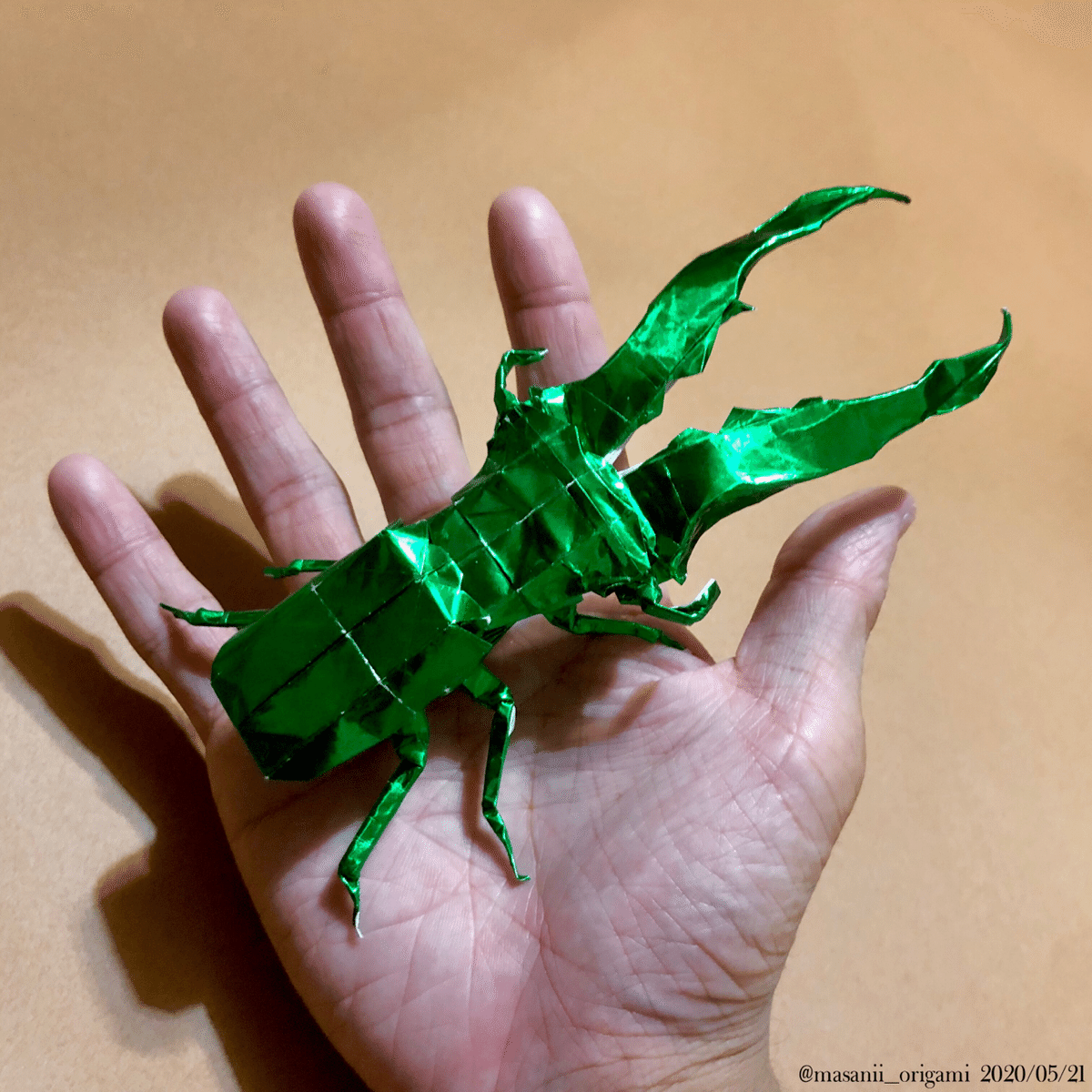大迫力の昆虫折り紙! メタリフェルホソアカクワガタ×グリーンホイル紙まさにぃ。