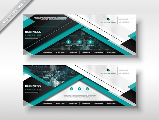 ビジネス横長バナー現代的なデザインモダンなレイアウトのテンプレート緑色黒色Premiumベクトル素材。