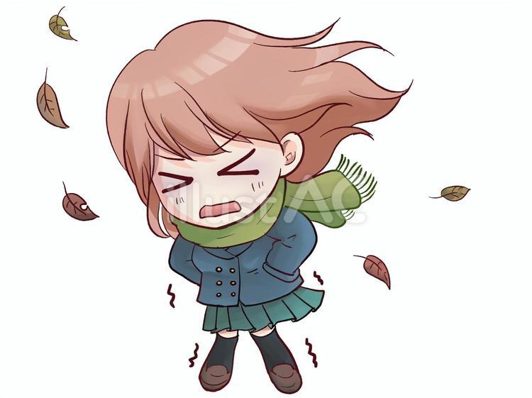 冬に外に出たら冷たい風が吹いてきて寒がっている女の子のイラスト素材71812765- PIXTA。
