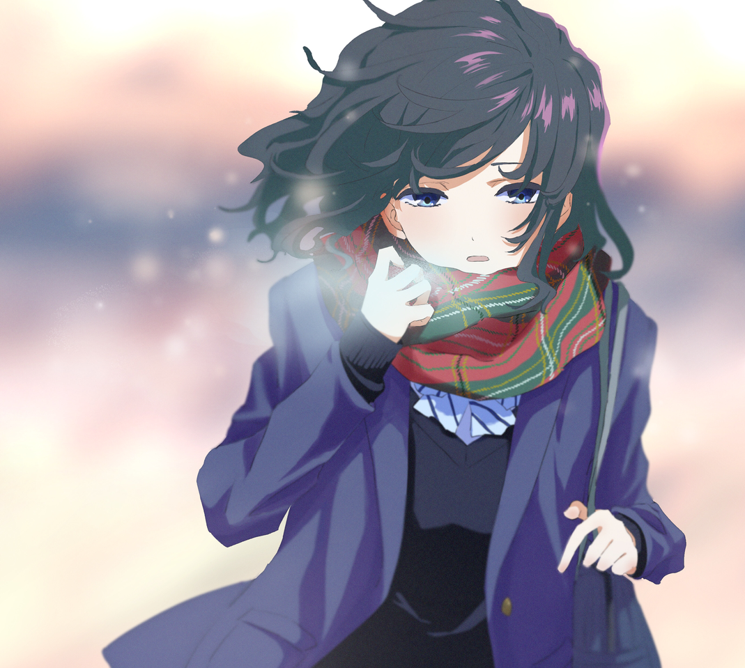 寒そうな女子高生萌えのイラスト,かわいいのイラスト,アニメのイラストSkillots。