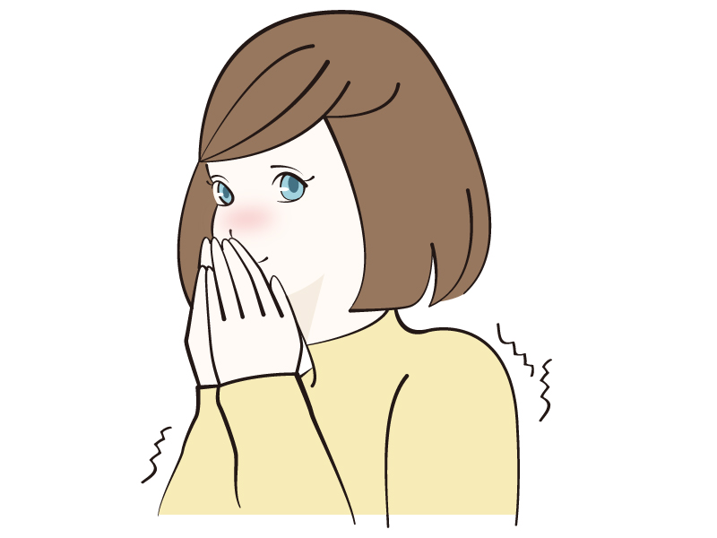 寒くて息で手を温めている女性のイラストイラスト無料・かわいいテンプレート。